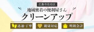 | 便利屋クリーンアップ | 広島市 | 各種代行 | 3,300円〜 | 5.0/5 | 241件 | 8:00~22:00 | 年中無休 | 詳細 |
