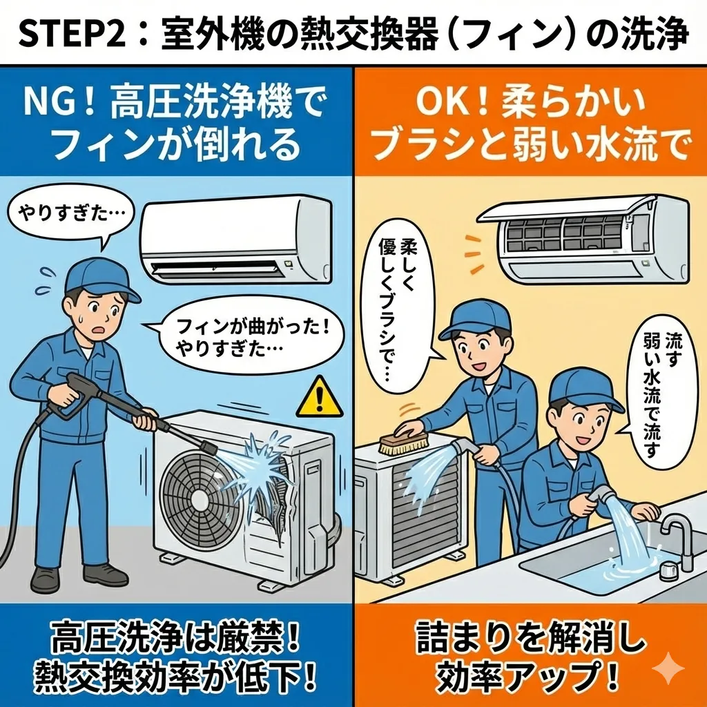 室外機の熱交換器(フィン)の洗浄