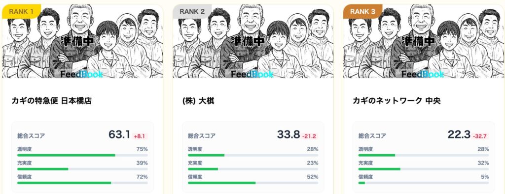 私たち公平な格付けメディア「FeedBook」は、広告費を一切無視し、24時間体制で以下の3軸に基づいた実態調査を行っています。