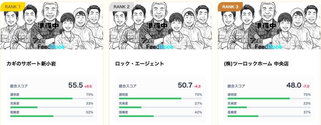 私たち公平な格付けメディア「FeedBook」は、広告費を一切無視し、24時間体制で以下の3軸に基づいた実態調査を行っています。