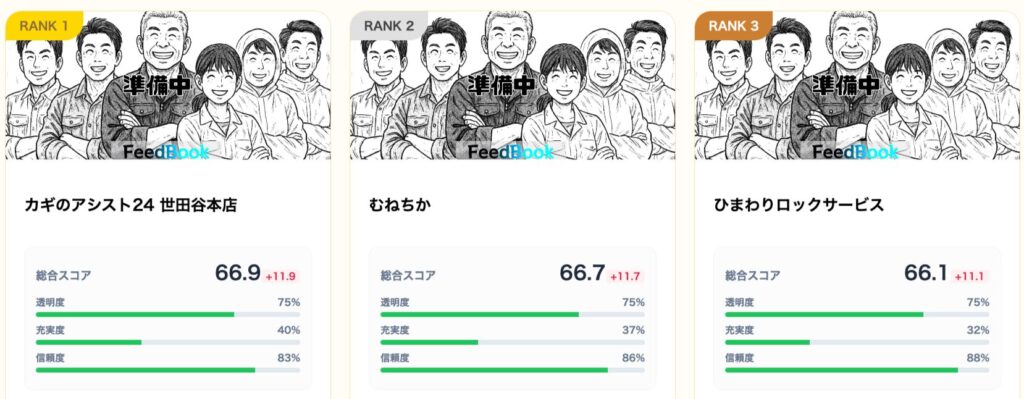 今回ランクインしたBEST3のスコア傾向から、世田谷区の鍵屋事情には明確な特徴があります。