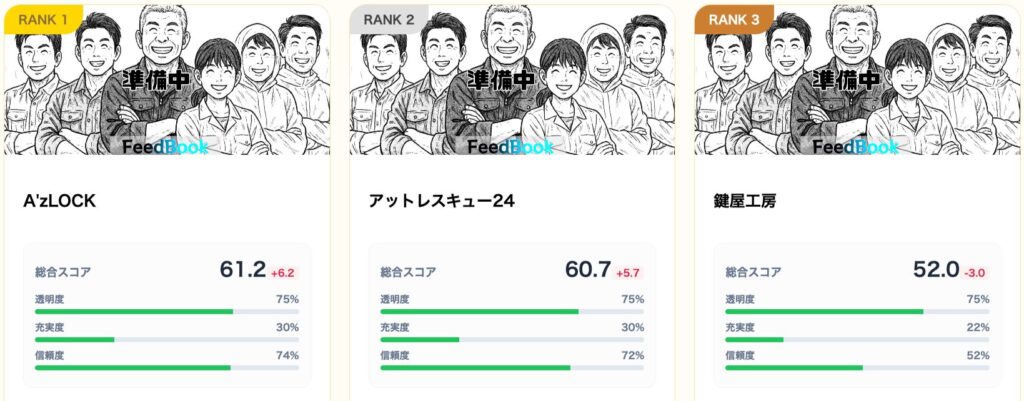 私たち公平な格付けメディア「FeedBook」は、広告費を一切無視し、24時間体制で以下の3軸に基づいた実態調査を行っています。