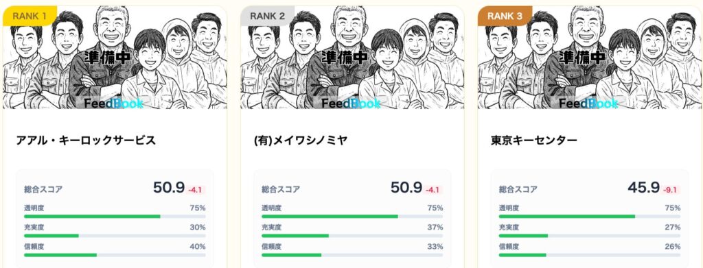 私たち公平な格付けメディア「FeedBook」は、広告費を一切無視し、24時間体制で以下の3軸に基づいた実態調査を行っています。