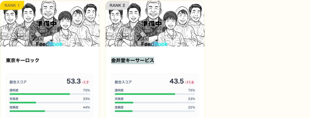充実度(Web情報の量)は33%と決して高くありませんが、信頼度は44%と今回の調査でトップです。透明度も75%あり、実店舗としての実態が明確です。派手なネット広告を出さずとも、地域住民からの信頼とリピートで営業を続けている「技術屋」としての姿勢が評価されました。