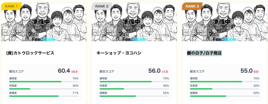 私たち公平な格付けメディア「FeedBook」は、広告費を一切無視し、24時間体制で以下の3軸に基づいた実態調査を行っています。