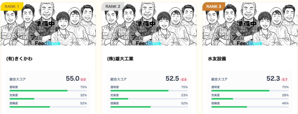 FeedBookの独自アルゴリズムにより、Web上の見かけではなく「事業実態の透明性」と「信頼度」で厳選した3社です。