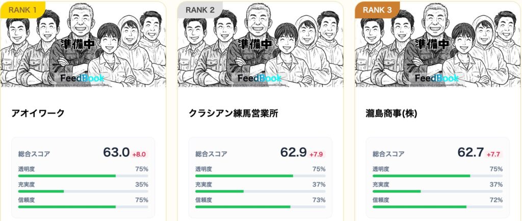 公平な格付けメディア「FeedBook」では、広告費を一切受け取らず、24時間体制で事業者の実態(運営の透明度・Web情報の充実度・信頼度)を調査しています。