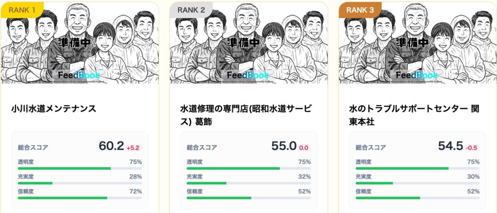 FeedBookの調査員が、葛飾区に対応する水道修理業者83社を徹底調査しました。 広告費によるランキング操作は一切ありません。選ばれたのは、Web上の派手な演出よりも「地域での信頼」と「運営の透明性」を重視している店舗です。