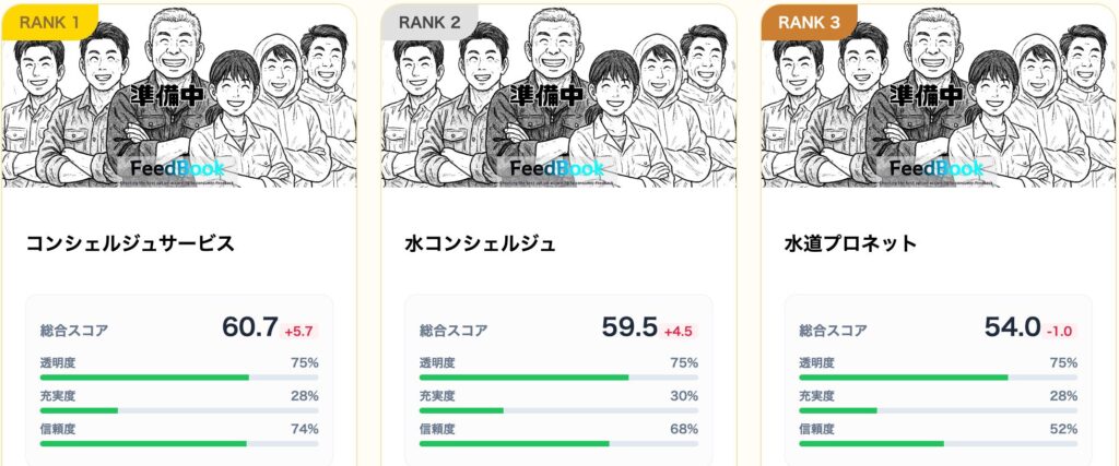 公平な格付けメディア「FeedBook」では、広告費を一切受け取らず、24時間体制で事業者の実態(運営の透明度・Web情報の充実度・信頼度)を調査しています。