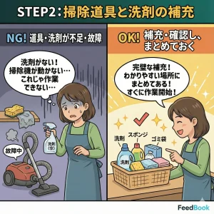 ・掃除道具と洗剤の補充