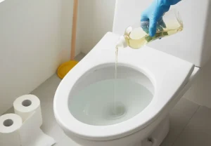便器に食器用の中性洗剤を約100ml注ぎ、その後にお湯を入れて20分ほど待ちます。界面活性剤の働きで滑りが良くなり、詰まりが抜けやすくなります。