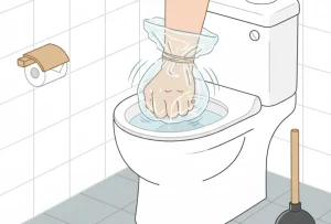 ラバーカップがない場合は、厚手のビニール袋を二重にして手に被せ、握り拳を作って排水口を「ゆっくり押し、素早く引く」動作を行います。即席のスッポンとして代用でき、詰まりの解消を試すことが可能です。
