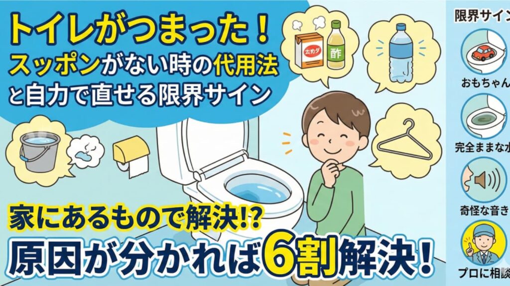 トイレのつまりは突然やってきます。「水が溢れそう!」「業者を呼ぶと高そう…」と焦る気持ちはわかりますが、まずは深呼吸してください。実は、「流したもの」さえ分かれば、家にあるもので解決できるケースが6割以上です。