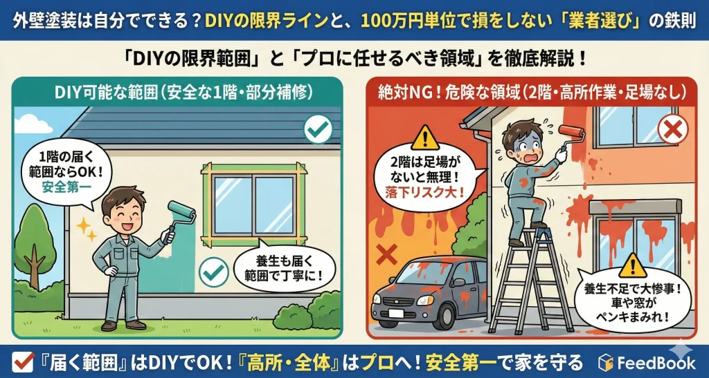 外壁塗装は自分でできる?DIYの限界ラインと、100万円単位で損をしない「業者選び」の鉄則